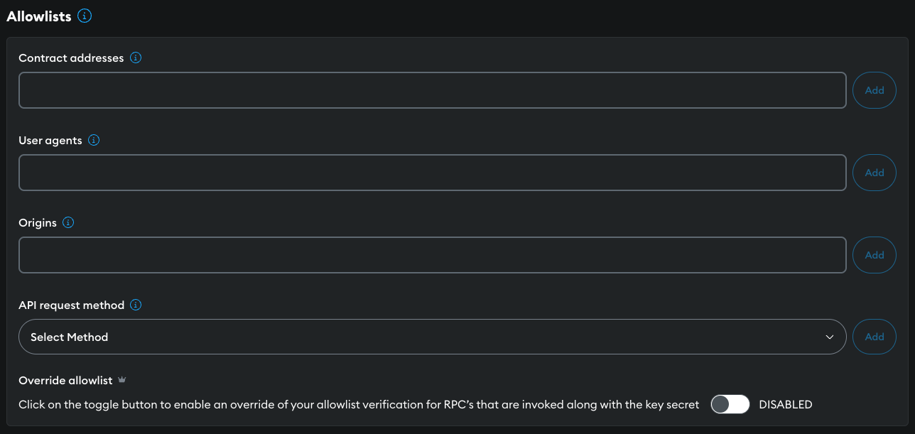 If your application only queries data from specific Ethereum smart contracts or addresses, add those addresses to the Contract Addresses allowlist.